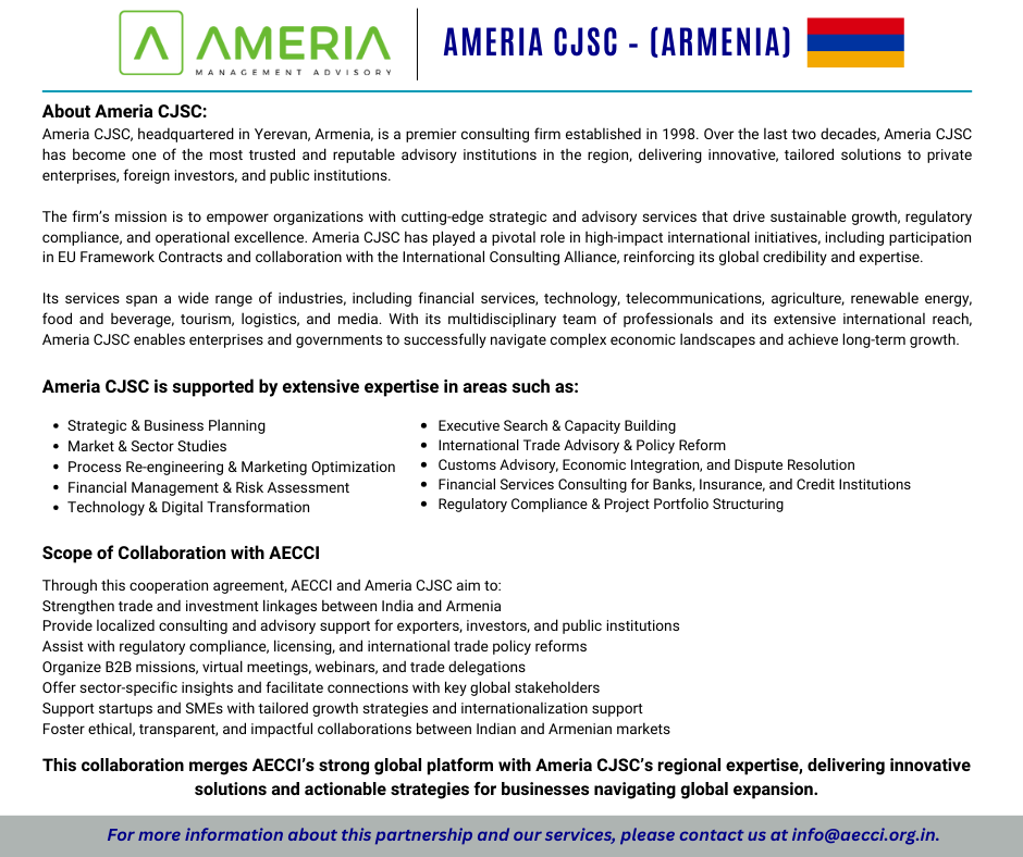 AECCI proudly announces its strategic collaboration with Ameria CJSC, Armenia